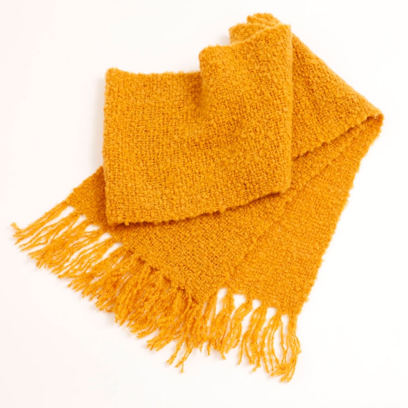 スラブ織り特有の凹凸感と、ブルーグリーンを基調とした表情豊かな毛糸使いがとてもおしゃれです。